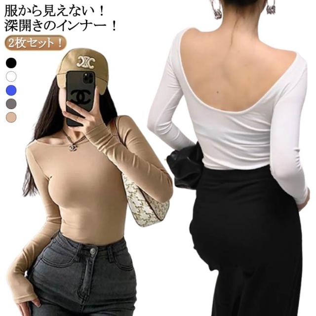 背中 2枚セット 長袖 襟ぐり えり深 背中 スリム ボディライン 和装 背中 深あき インナー えり深 開く 深アキ レディース 広い 首 下着 和服 暖かい 温感 保温 薄手 シャツ 長袖