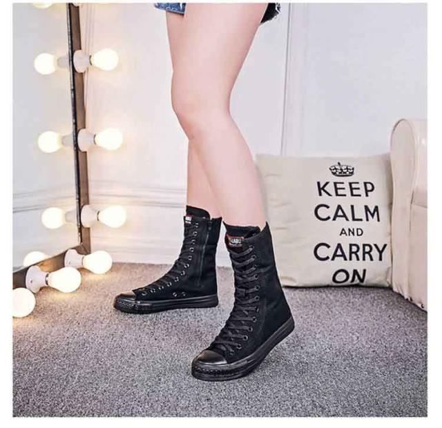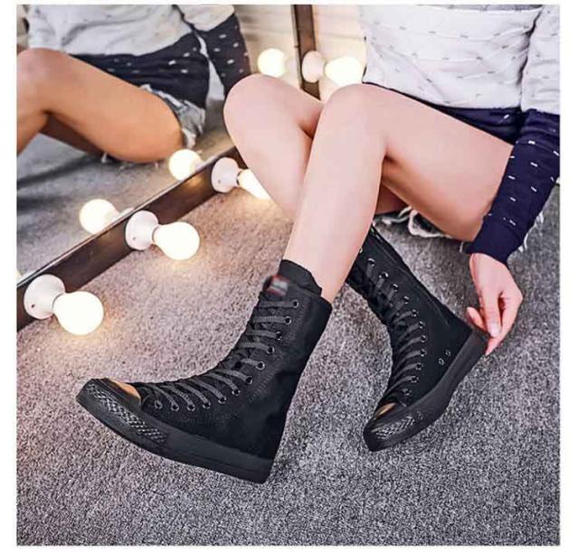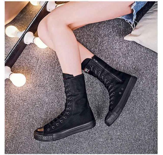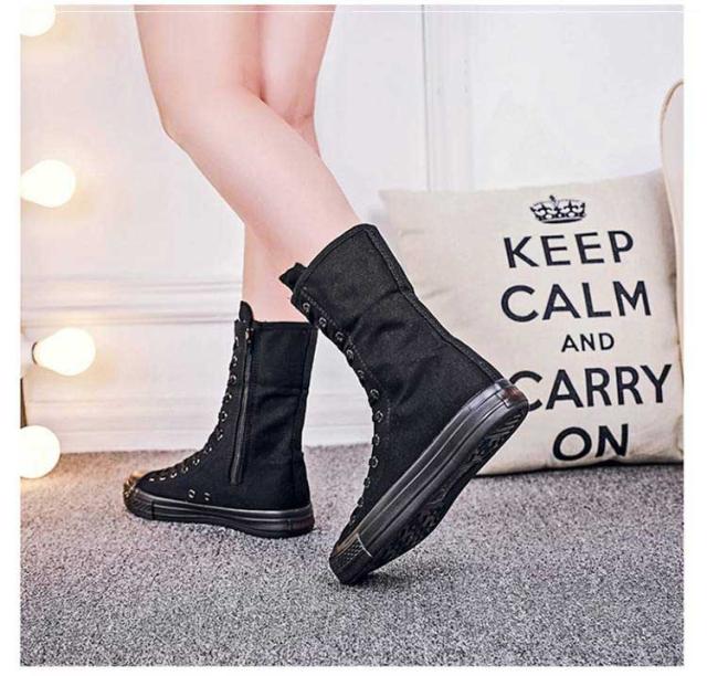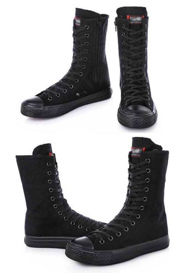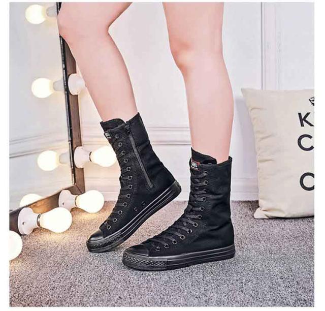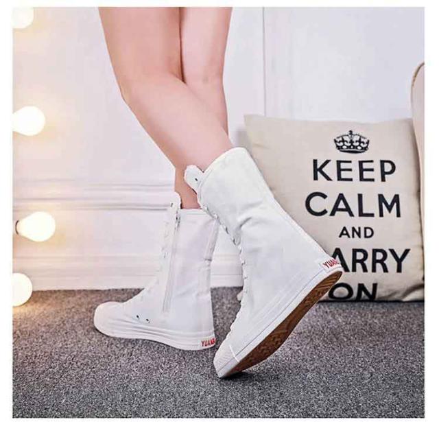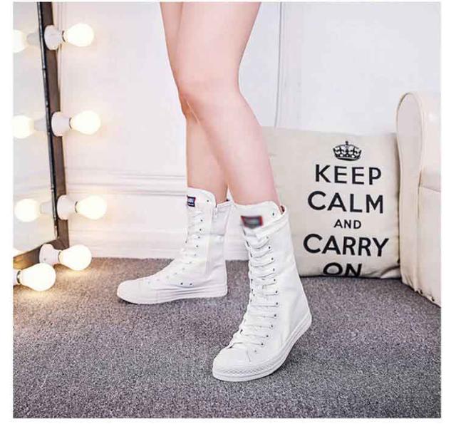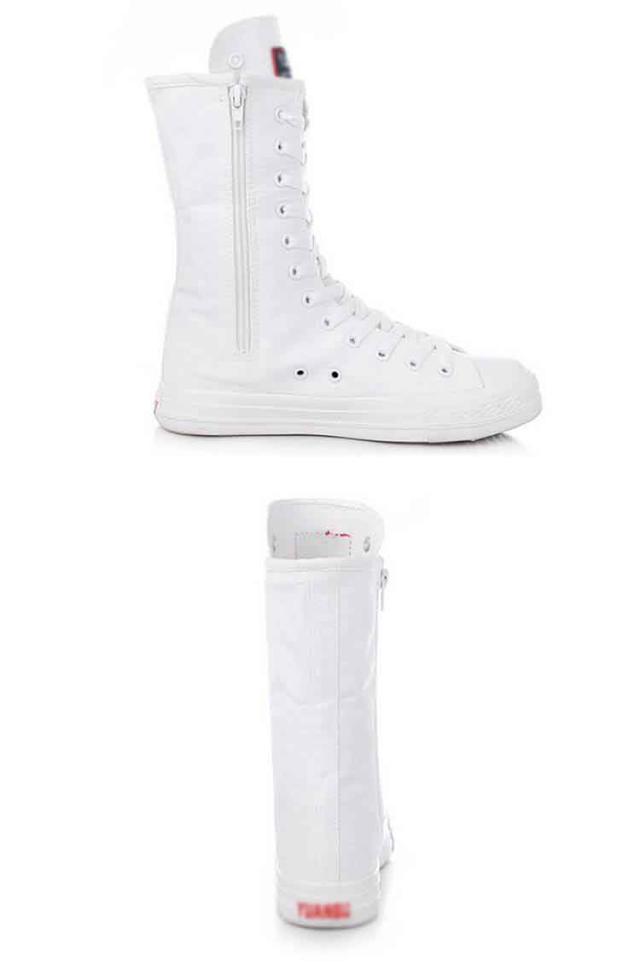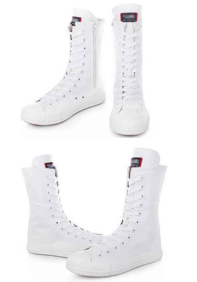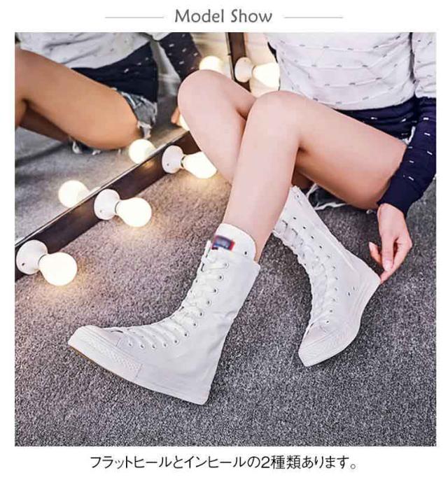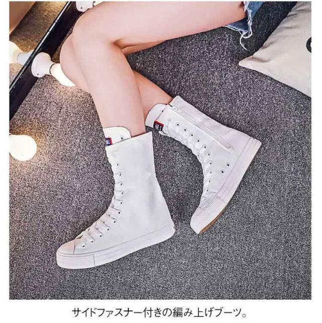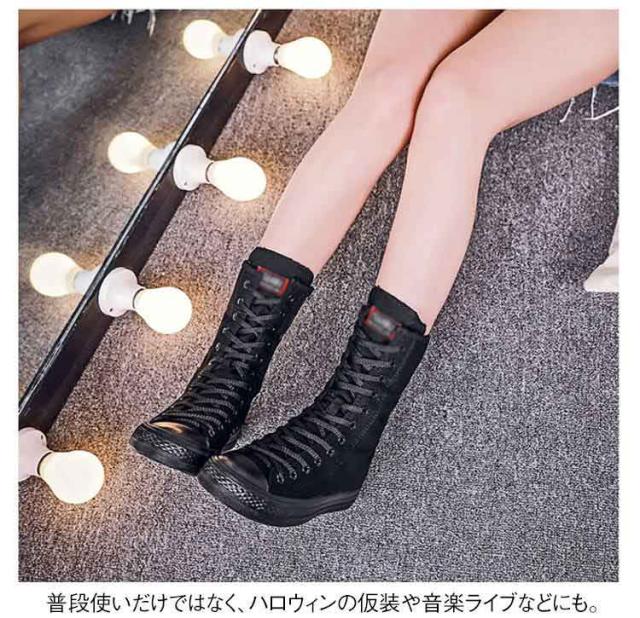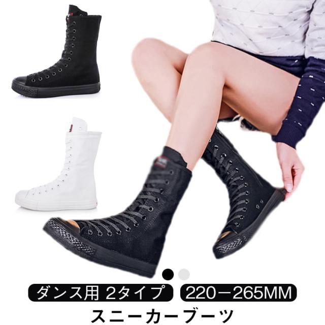 スニーカーブーツ ダンスブーツ ミドル 大きサイズ ブーツ ダンススニーカー レースアップ 白 黒 インヒール 美脚 サイドジップ ダンスシューズ 滑り止め スニーカーブーツ キャンバス 春 秋 冬
