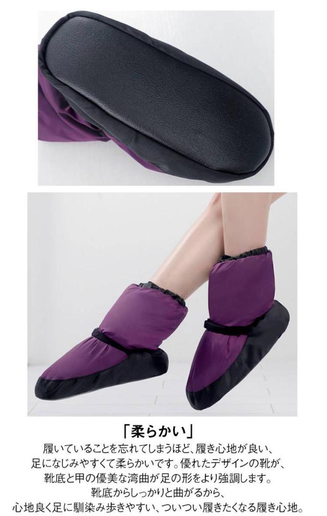 | 全6色!ブーツタイプのバレエウォームアップシューズ。 【優れた保温性】足首まで暖かく保つことができるだけでなく、滑りにくい特徴も備えています。寒い冬の室内での使用においては、足を暖かく保つだけでなく、滑りにくいソールが安定感を提供し、安全な動きをサポートします。 【フィット感】足首や脚口の部分にベルクロを使用することで、個別のサイズや好みに合わせて締め付け具合を調整することができます。これにより、快適なフィット感を実現し、足に適したサポートを提供します。 「柔らかい」履いていることを忘れてしまうほど、履き心地が良い、足になじみやすくて柔らかいです。優れたデザインの靴が、靴底と甲の優美な湾曲が足の形をより強調します。靴底からしっかりと曲がるから、心地良く足に馴染み歩きやすい、ついつい履きたくなる履き心地。 【様々な場面で大活躍】レッスン前のウォームアップやリハーサル、コンクールなど、様々な場面で大活躍するアイテムです。 | |
