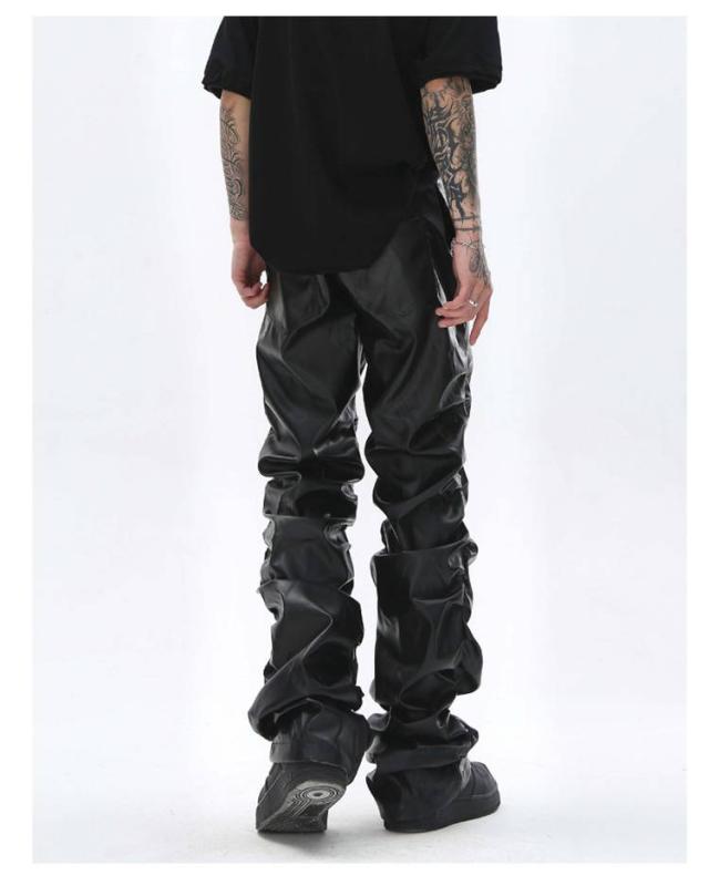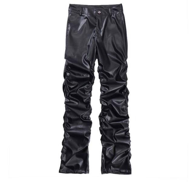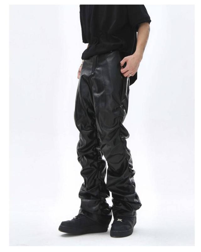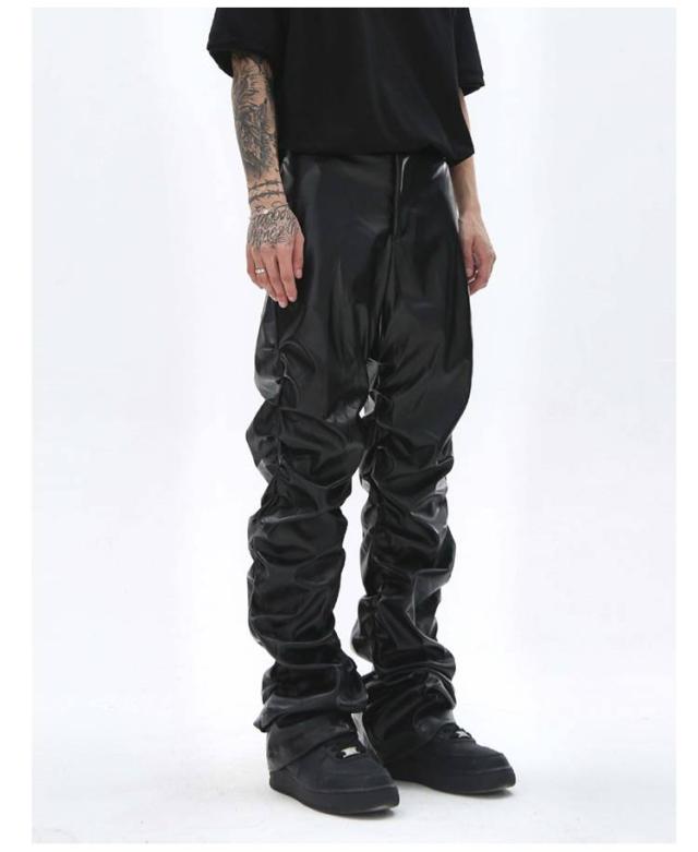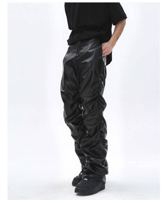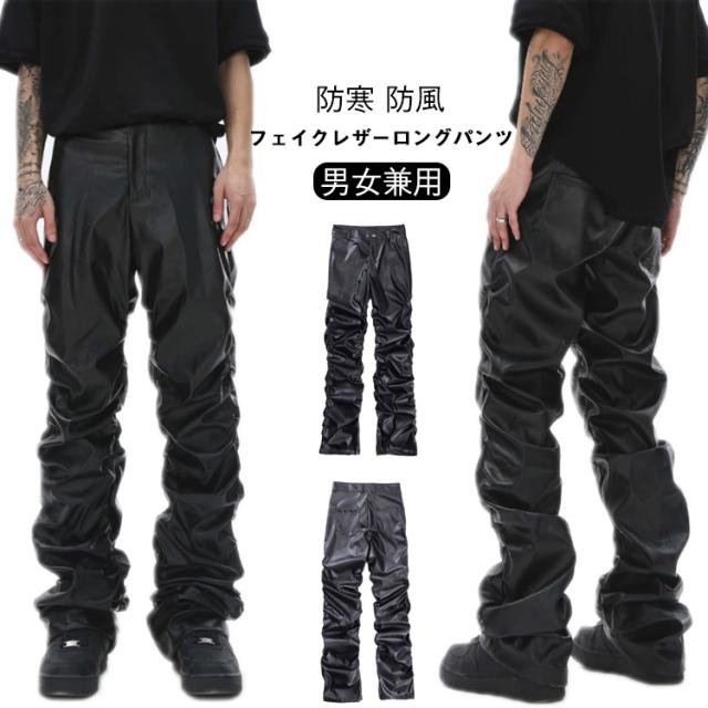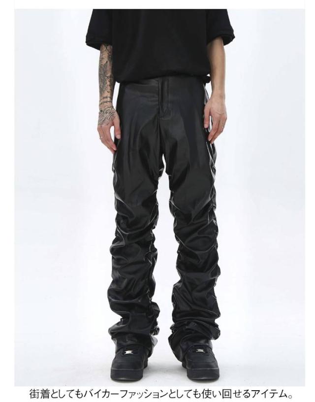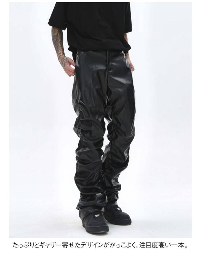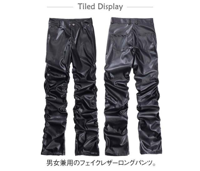 | 男女兼用のフェイクレザーロングパンツ。 街着としてもバイカーファッションとしても使い回せるアイテム。 しっかりと防寒防風効果抜群なPUレザー素材で秋冬にも大丈夫。 たっぷりとギャザー寄せたデザインがかっこよく、注目度高い一本。 | |