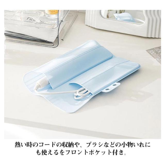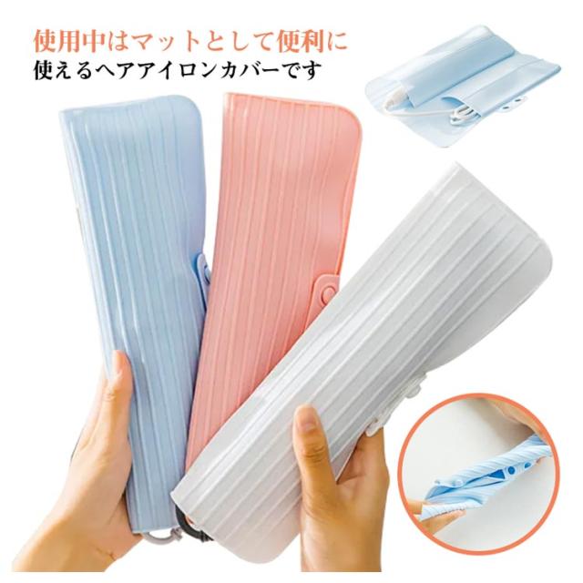 耐熱 ヘアアイロンマット 収納ケース シリコン 旅行グッズ 火傷防止 コテ こて ヘアーアイロン シリコン 旅行 出張 ヘアアイロンポーチ お出かけ ヘアーアイロン カールアイロン 携帯 落下防止 シリコン ホワイト ブルー