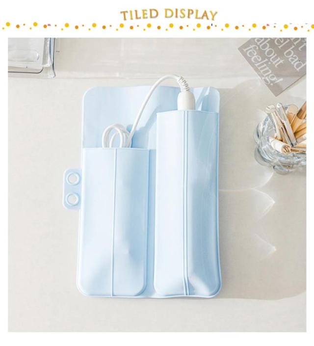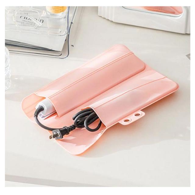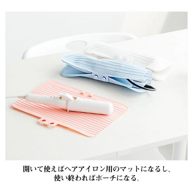 | 使用中はマットとして便利に使えるヘアアイロンカバーです。 熱い時のコードの収納や、ブラシなどの小物いれにも使えるをフロントポケット付き。 開いて使えばヘアアイロン用のマットになるし、使い終わればポーチになる。 旅行や出張時の持ち運び用としてもぴったり♪ライブやイベントにペンライトを収納してもOK! シリコン製なので、アレルギー体質の方でも安心です。 | |
