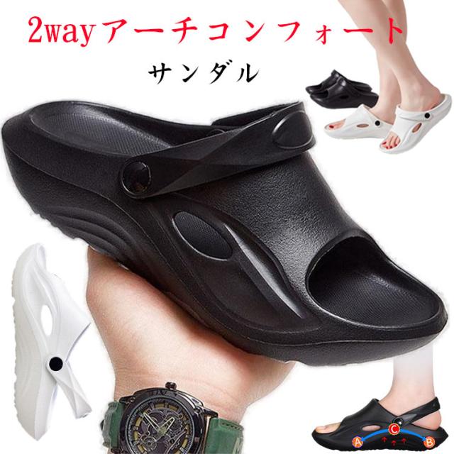 サンダル アーチサポート 2way メンズ 防水 バススリッパ ベランダサンダル スリッパ EVA 軽量 厚底 履きやすい 疲れにくい メンズ ベランダ オフィス ビーチ プール