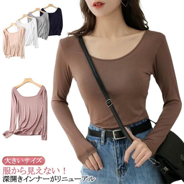 深あき インナー レディース 長袖 オフショルダー 肩開き 肩あき 深開き 襟ぐり広め 保温 秋用 冬用 長袖 肌着 ボートネック バレエネック 大きいサイズ 送料無料