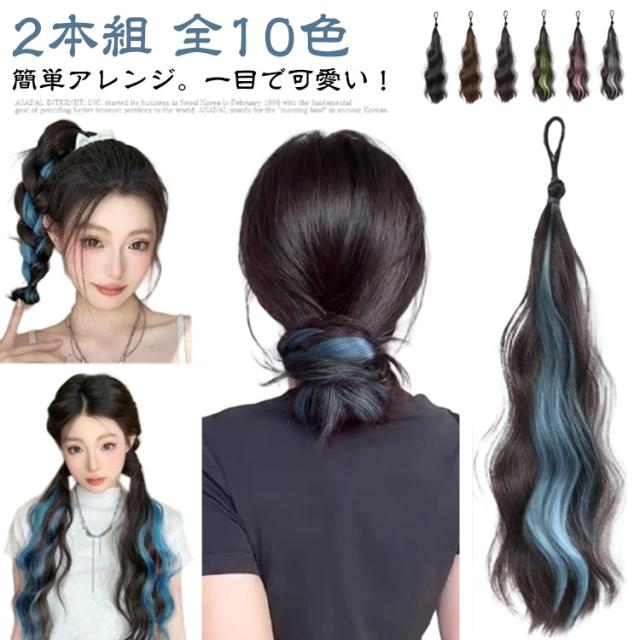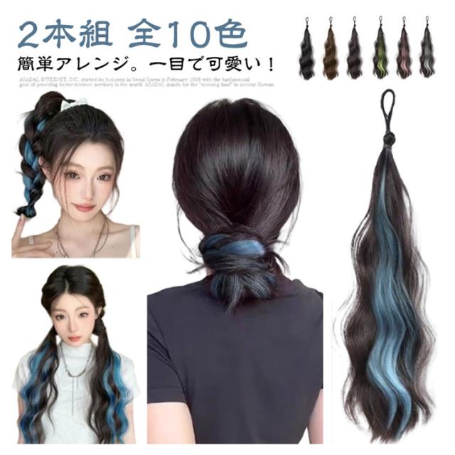 2本組 全10色 コスプレ カラフル エクステ 派手 ポニーテール 付け毛 ヘアゴム グラデーション つけ毛 ヘアーエクステンション ツインテール ダンスヘア ヒップホップ ダンス 仮装 ウェーブ 女の子 子供 派手 発表会