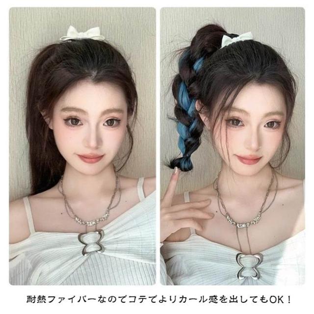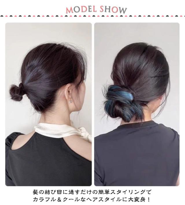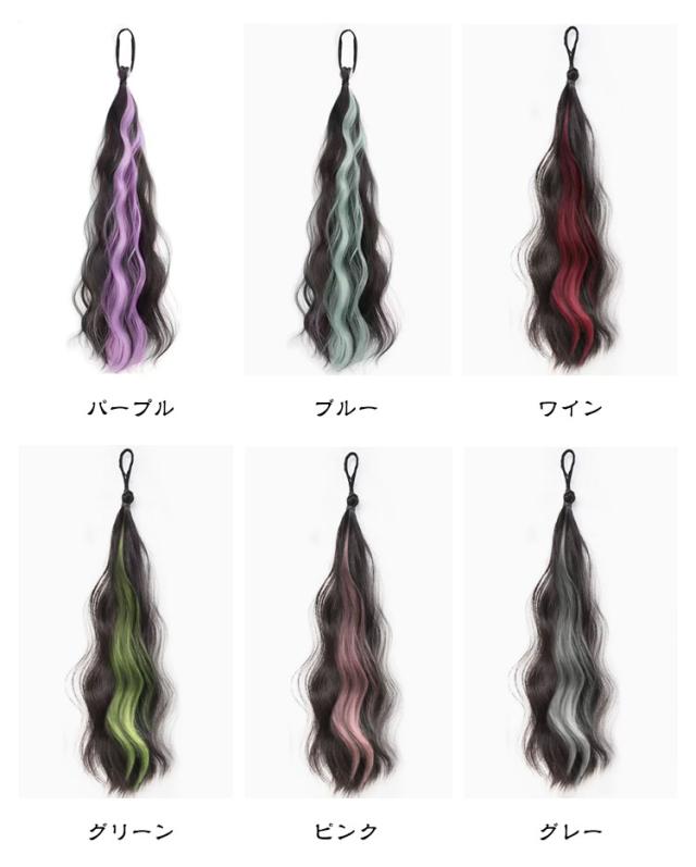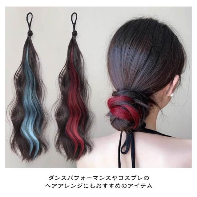| 【2本組】【全10色】 簡単アレンジ。一目で可愛い! 髪の結び目に通すだけの簡単スタイリングでカラフル&クールなヘアスタイルに大変身! 地毛にゴムで結ぶだけ簡単ツインテール!緩やかなウェーブ感がかわいい。 耐熱ファイバーなのでコテでよりカール感を出してもOK! ダンスパフォーマンスやコスプレのヘアアレンジにもおすすめのアイテム | |