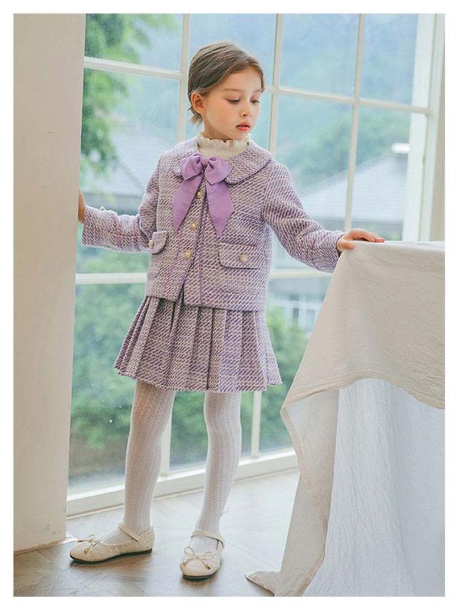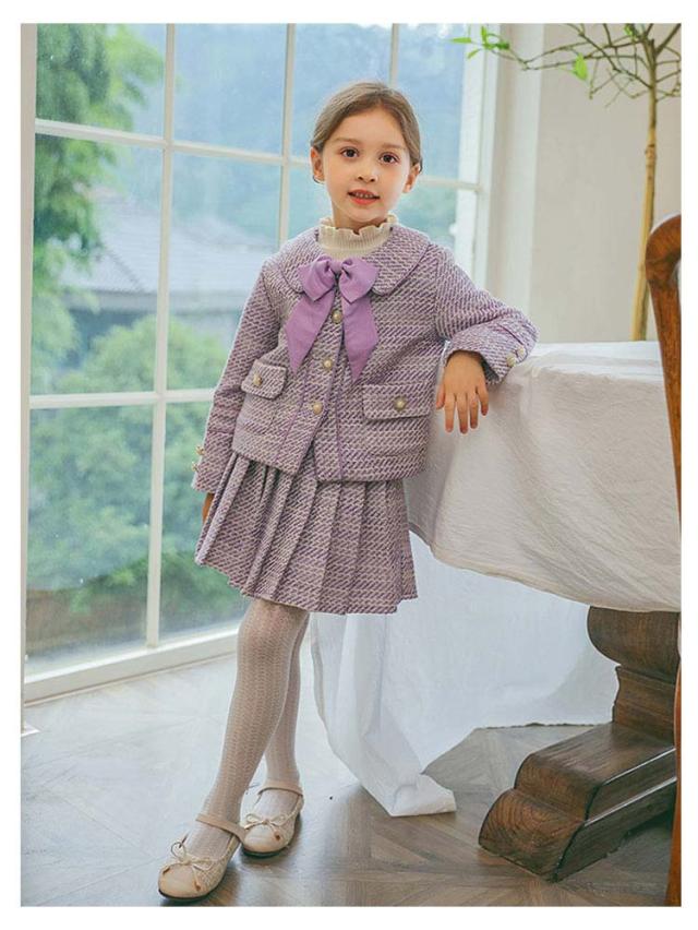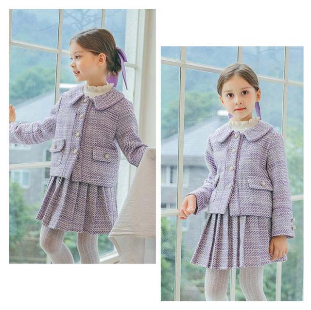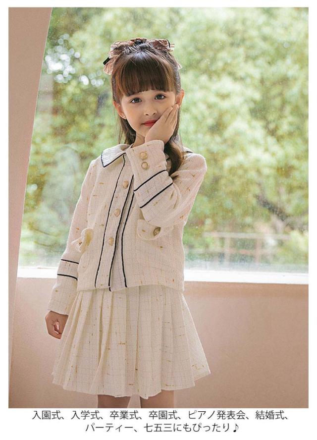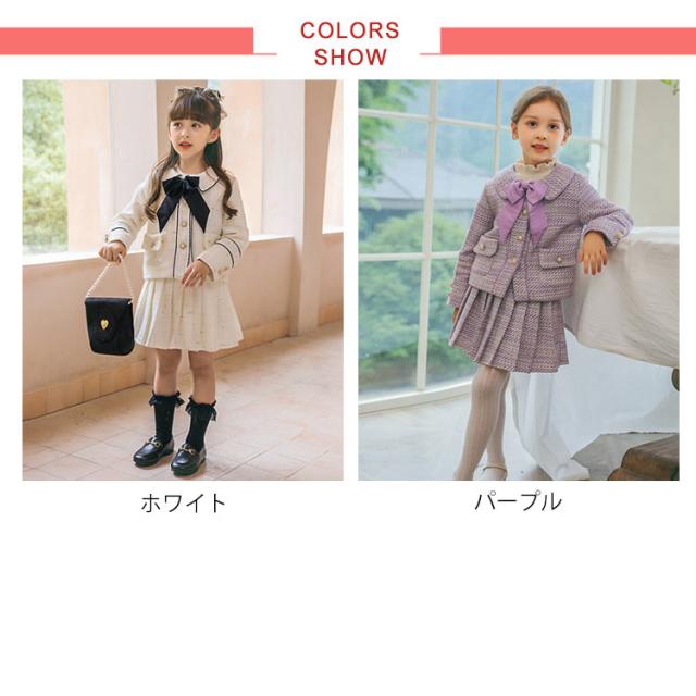 スカート スーツ 入学式 卒園式 上下セット 入学式 小学校 フォーマルセット ホワイト キッズ ツイードジャケット ガールズ スカートセット フォーマル 子供スーツ 女の子 パープル きれいめ かわいい 結婚式 七五三 撮影