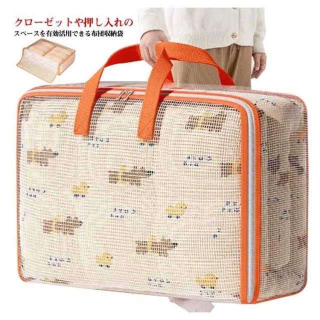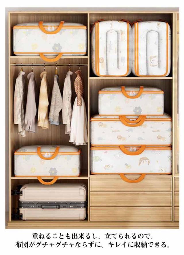 | クローゼットや押し入れのスペースを有効活用できる布団収納袋。 たっぷり入る大容量。オフシーズンの衣類、羽毛布団、毛布、敷パッドなどの寝具の長期保管にピッタリ、すっきり収納できます。 重ねることも出来るし、立てられるので、布団がグチャグチャならずに、キレイに収納できる。 防水仕様なので、汚れてしまった場合は、水で丸洗いできる。いつもキレイで清潔にご利用頂ける。 柔らかい素材で折りたたみ可能なので、使用しない時も収納場所を取りません。 | |