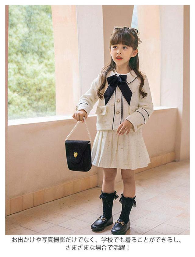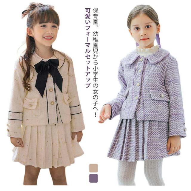 フォーマルセット 入学式 ツイードジャケット ガールズ 卒園式 ホワイト 小学校 フォーマルセット スカートセット 上下セット フォーマル スカート キッズ スーツ 入学式 パープル 子供スーツ きれいめ かわいい 結婚式 七五三 撮影
