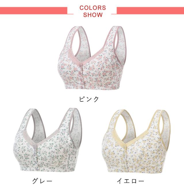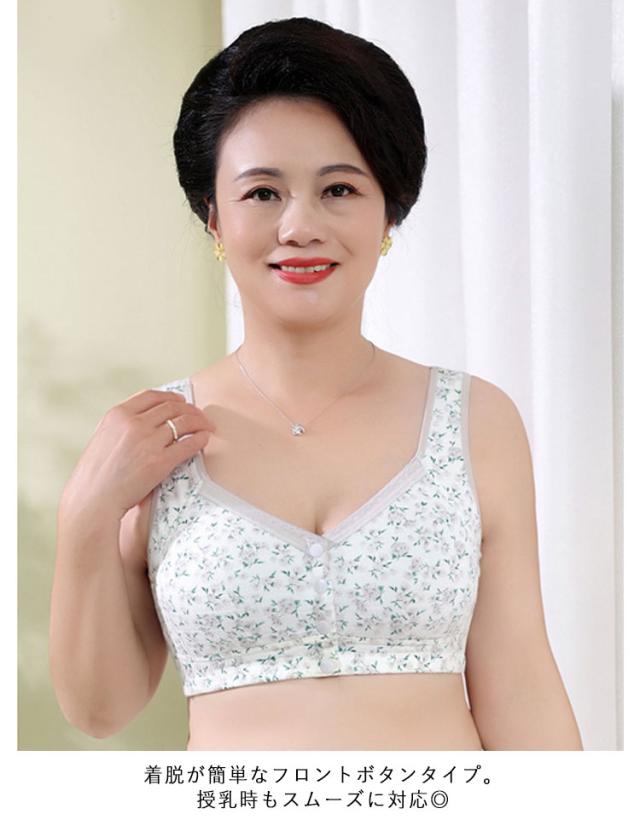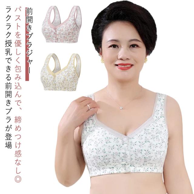 前開きブラジャー ノンワイヤー シニア 花柄 幅広 ナイトブラ シニア ストレッチ ブラジャー かわいい 肩紐 母の日 授乳ブラジャー おうちブラ 育乳 ノンワイヤーブラジャー 下着 敬老の日 ハーフトップ 祖母 ギフト プレゼント快適 大きいサイズ