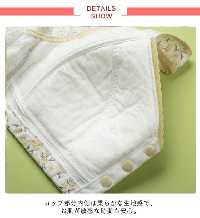 | 前開きブラジャー。バストを優しく包み込んで、締めつけ感なし◎ラクラク授乳できる前開きブラが登場 着脱が簡単なフロントボタンタイプ。授乳時もスムーズに対応◎ ストレスフリーな着用感!軽量で付けている感覚が少ないつくり。締めつけが苦手な方にもぴったりな、ノンワイヤー仕様。 カップ部分内側は柔らかな生地感で、お肌が敏感な時期も安心。 肩紐部分は幅広設計、快適な着心地。 ナイトブラとしても活躍!睡眠を妨げない軽い付け心地。ナイトブラとして使うのもおすすめ。 | |