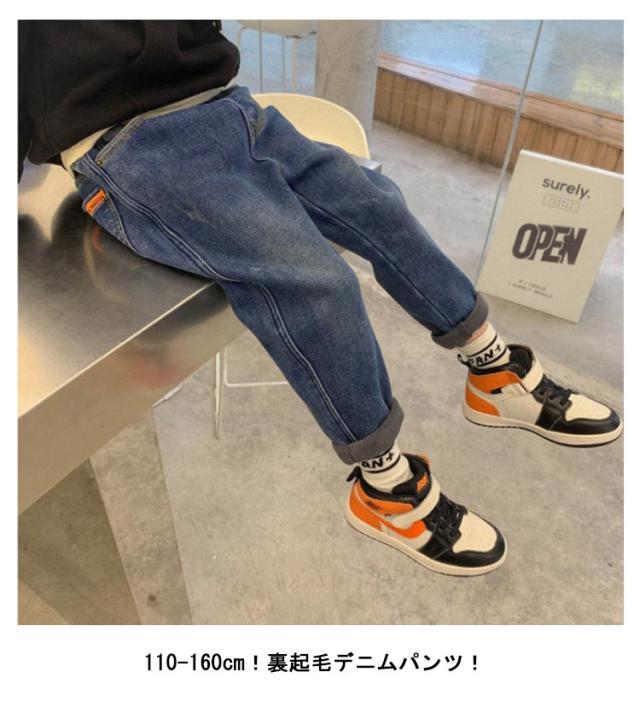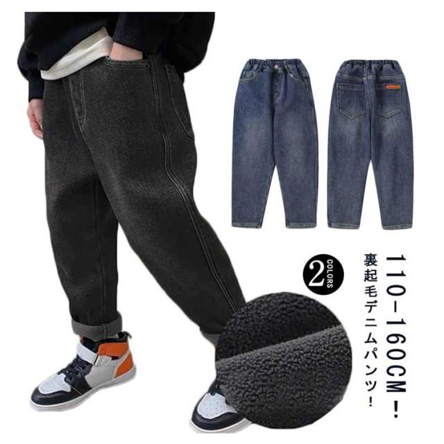 送料無料 裏起毛 デニム パンツ キッズ 裏起毛デニムパンツ ジーンズ ジーパン 長ズボン 110 120 130 140 150 160 女の子 男の子 子ども 裏ボア ボトムス 子供服 子ども服 ゆったり あったか 暖かい ウエストゴム 子供パンツ 小学生 中学生 ジュニア 防寒 秋冬 カジュアル