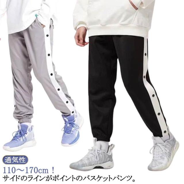 女の子 夏 バスケットパンツ バスケパンツ ジュニア サイドライン スナップボタン バスケットパンツ サイドボタン 秋 裾ボタン ジャージ バスケットボールパンツ バスパン 長ズボン ロングパンツ 春 下 バスケットボールパンツ 冬