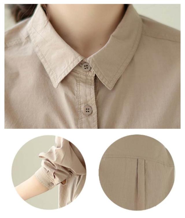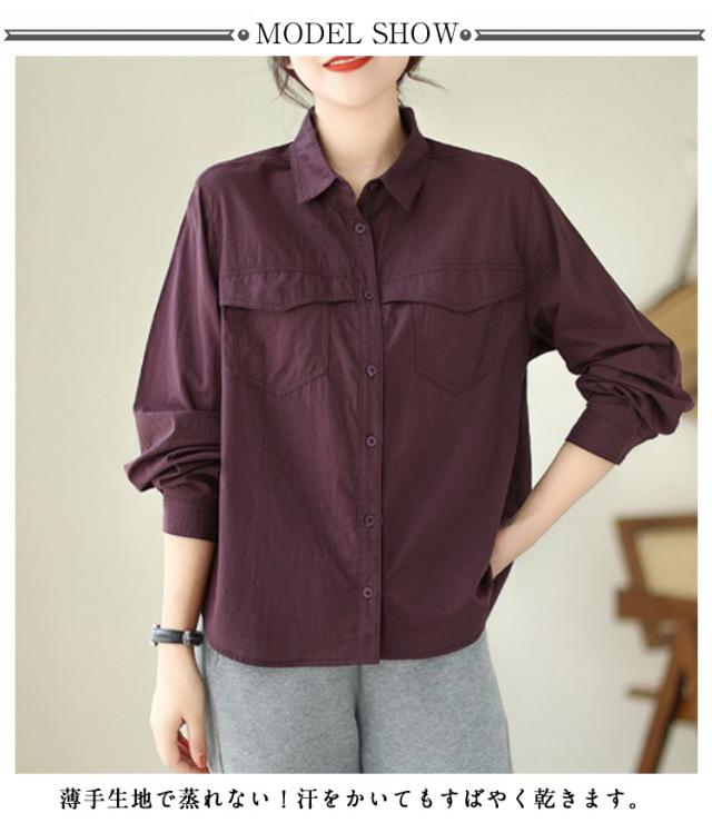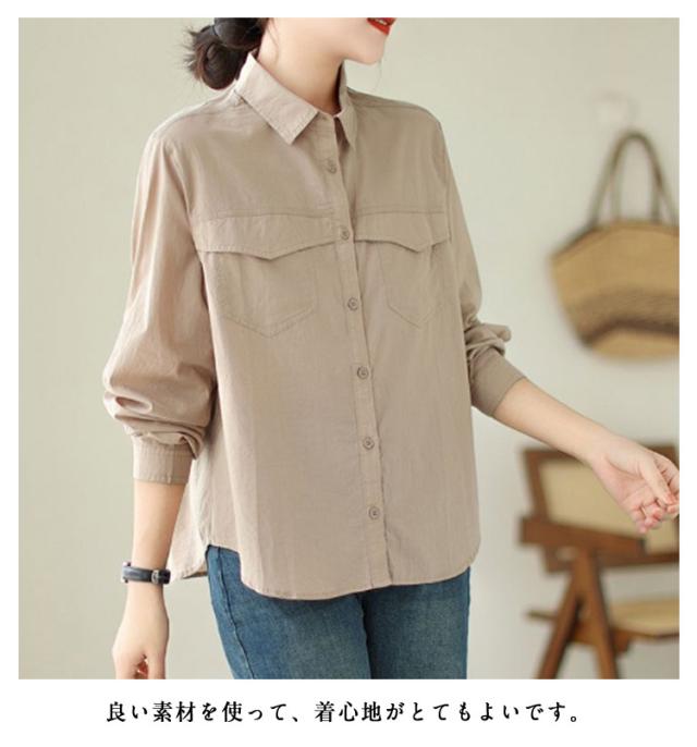 ブラウス レディース 長袖 シャツ 春夏秋 綿 トップス シャツ 綿シャツ 通気性 柔らかい カジュアルシャツ 通勤 体型カバー 上着 スタイリッシュ 無地 大きいサイズ シャツ ブラウス