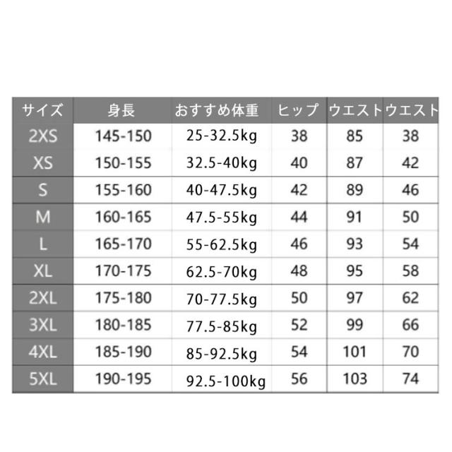 | サイズ | XXS XS S M L XL 2XL 3XL 4XL 5XL |