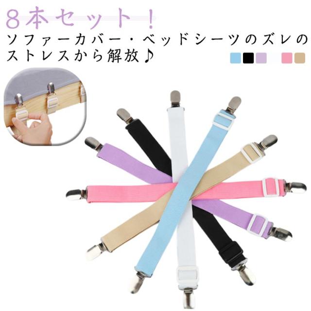 8本セット ベッドシーツクリップ ソファーカバー サスペンダー 布団 ずれ防止 ソファカバー用 シーツ ズレ防止 ずれ止め ベルト 布団クリップ シーツ固定 カバー固定 滑り止め ズレ防止クリップ アイロン台カバー クリップ ゴムバンド 伸縮 送料無料