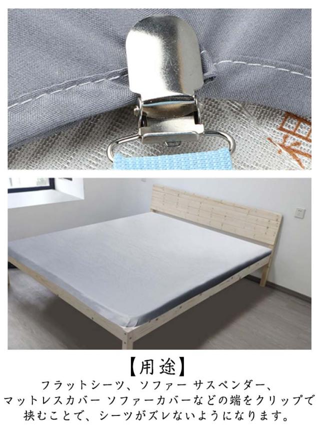 | 8本セット!ソファーカバー・ベッドシーツのズレのストレスから解放♪ 強力クリップを使った安心設計ので、ソファーカバーやベッドシーツの四隅を裏側からしっかり固定、ズレを防止します。 簡単ワンタッチで女性やお子様でも簡単に装着可能です! 【用途】 フラットシーツ、ソファーカバーロック、ソファー サスペンダー、敷パッド、ベッドカバ、マットレスカバー ソファーカバーなどの端をクリップで挟むことで、シーツがズレないようになります。 | |