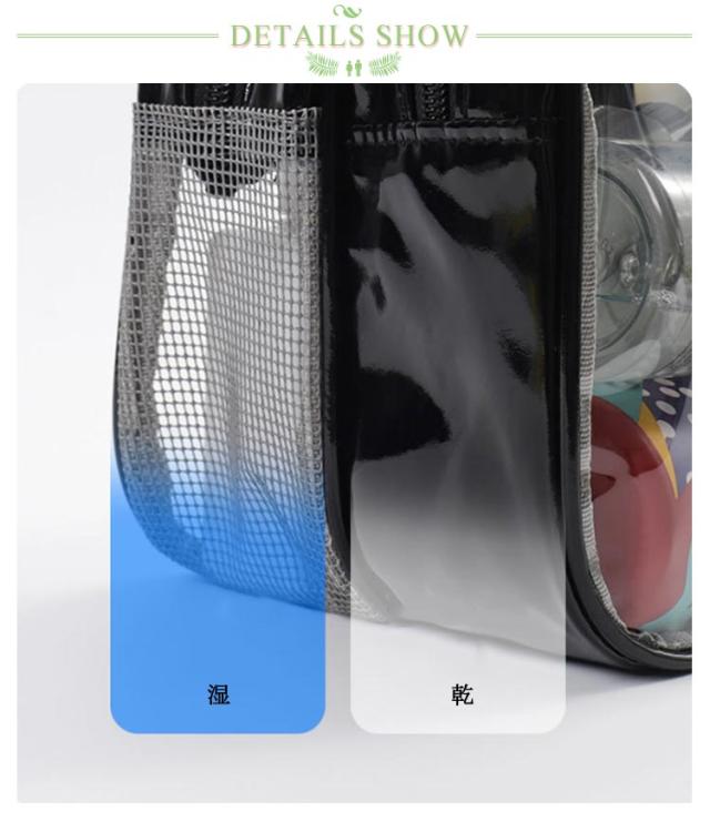 | 透明感のあるクリア素材がトレンド感満載のクリアトートバック。 ポーチや財布、スマホやサングラス、カラフルな小物など、中に入れるアイテムを変えるだけで、バックの印象も自分好みで自由自在! 材質はPVCの透明ビニール生地を採用し、耐久性と防水性が高く、水や汚れを防ぎます。汚れがついても、さっと拭けます。 冬の日にスパ、温泉、雨の日、夏の日にレジャー、プール、海、スポーツ、すなはらなどのシーンに使えます。 | |