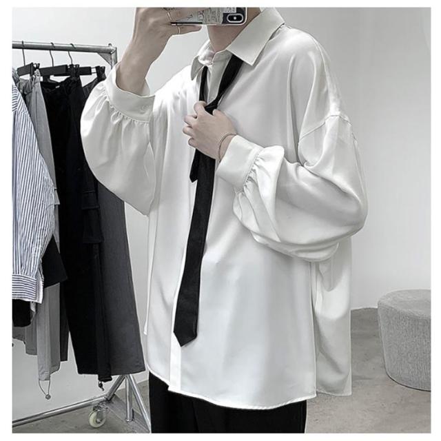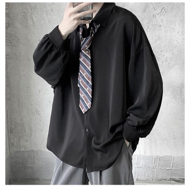 シャツ メンズ カジュアルシャツ 韓国ファッション ストリート系 無地 ビッグシルエット カジュアルシャツ オーバーサイズ メンズシャツ 原宿系 DK制服 男性 jk 秋服 長袖 ユニセックス カジュアル シャツ トップス 春 春服