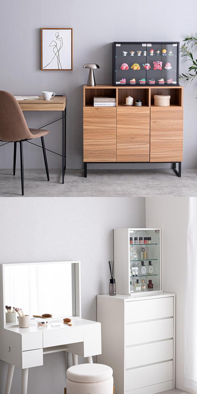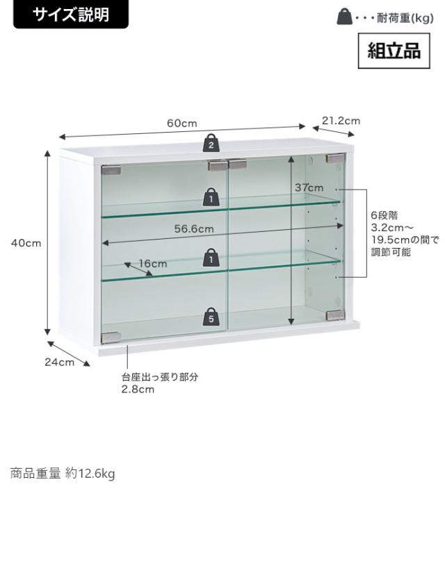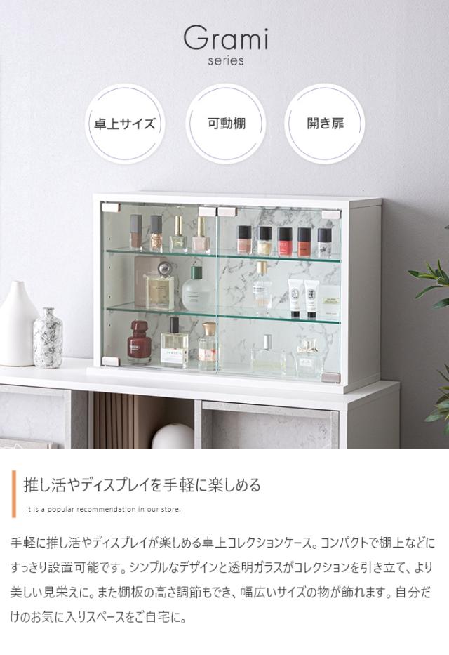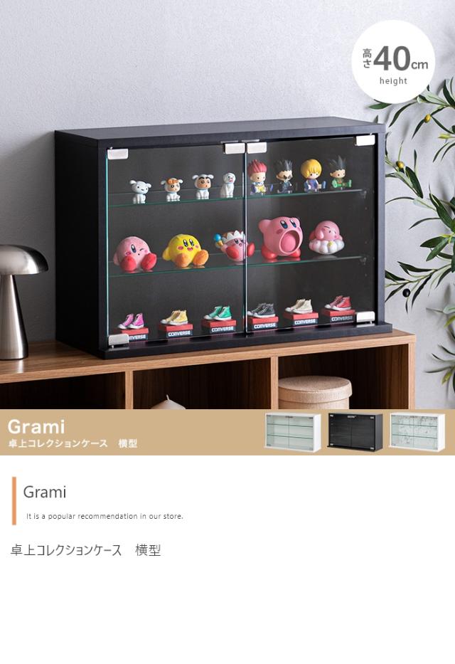 コレクションケース 卓上 フィギュアケース 高さ40cm 横型 Grami(グラミ) 3色対応 コレクションラック 棚 3段 フィギュア収納 収納ケース おしゃれ ディスプレイラック ガラス扉 スリム キャビネット
