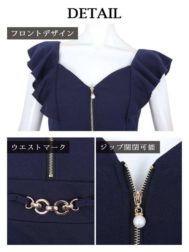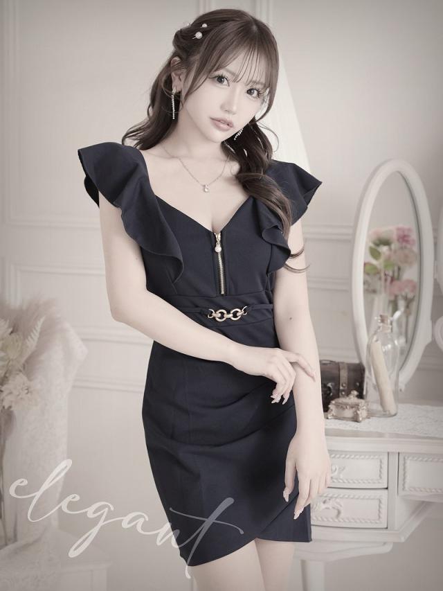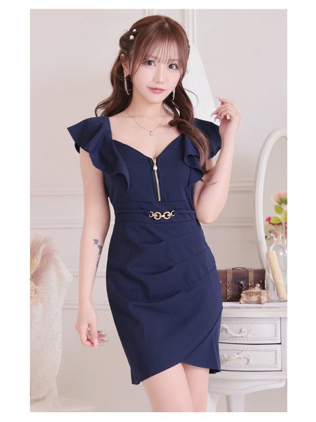 ミニドレス RyuyuChick バストジップ 袖付き フリル袖 二の腕華奢みせ 胸ジップ キャバ ドレス キャバドレス ミニ