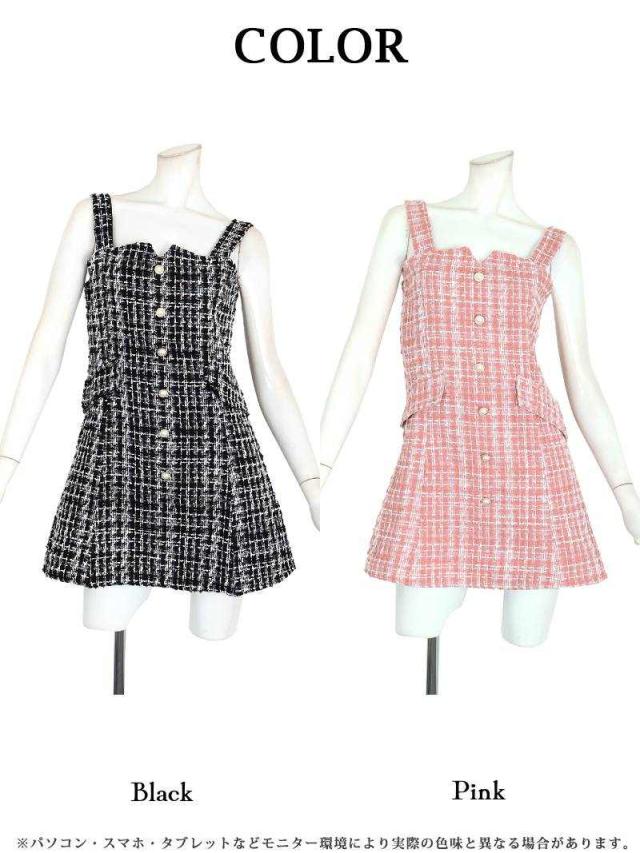 一部予約販売 ミニドレス RyuyuChick ツイード チェック柄 かわいい キャミワンピース ジャンパースカート キャバ
