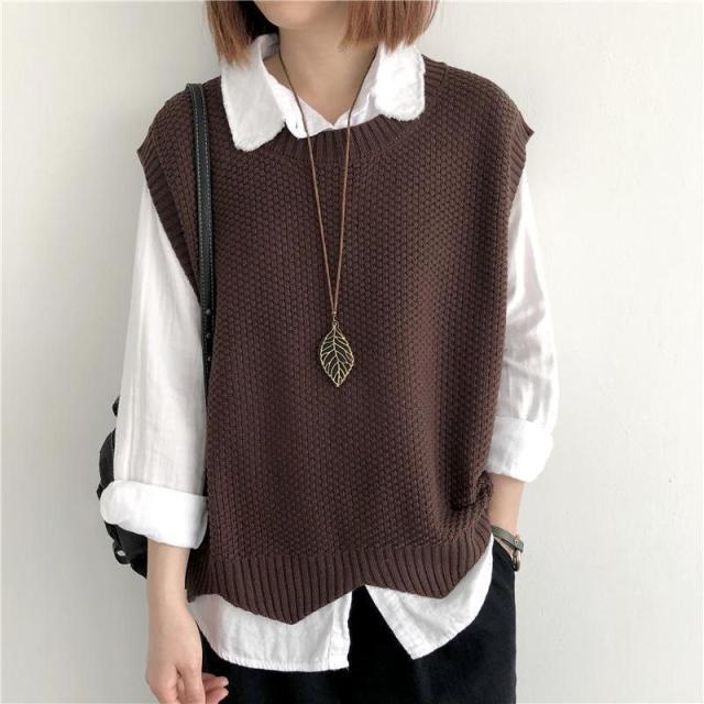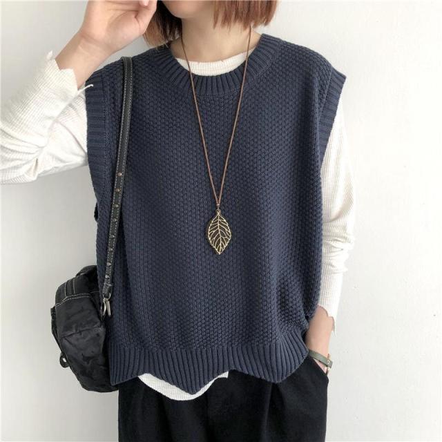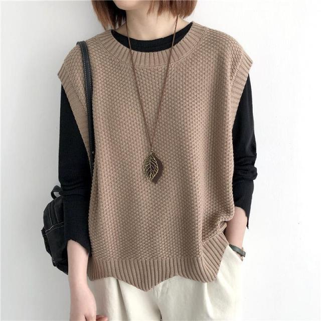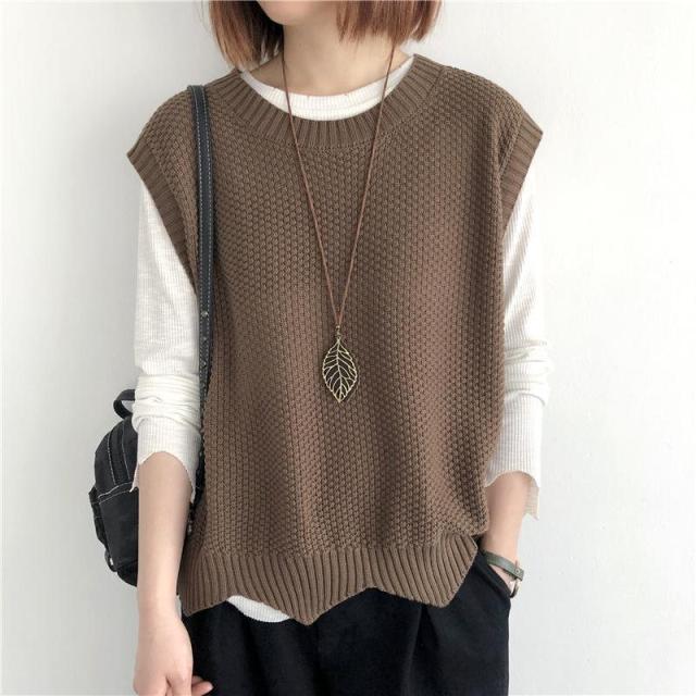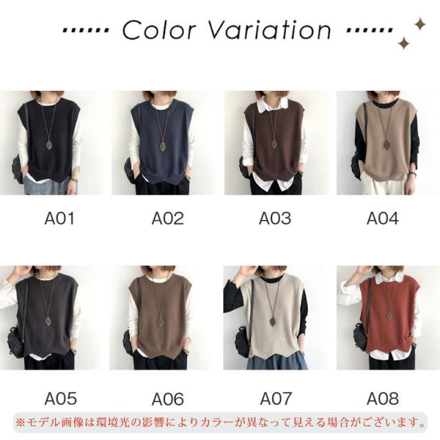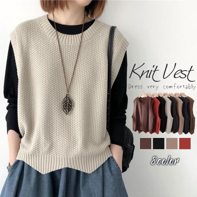 『2点ご購入で200円OFF』ニットベスト レディース セーター チョッキ トップス ベスト 薄手 着回し ゆったり セーター 無地 重ね着 秋コーデ ノースリーブ おし