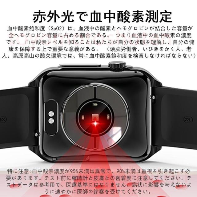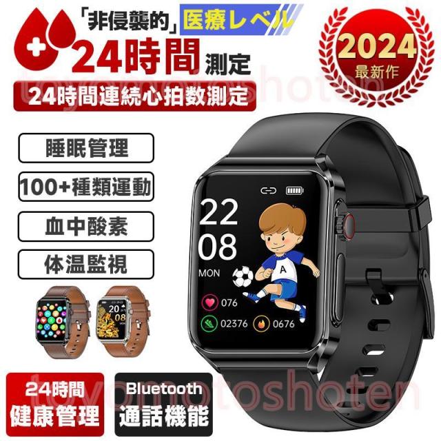 ●24H健康管理:心電図測定、通話可能、血圧測定、MET代謝当量、24時間体温監視、アラート、血中酸素、睡眠監視や心拍数などの測定機能付き
