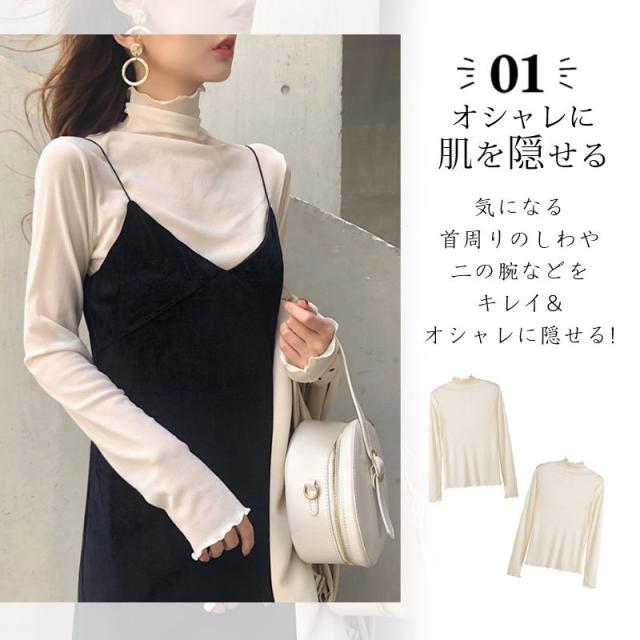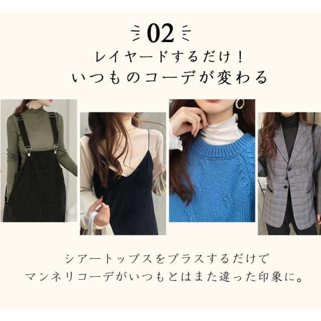 \2点ご購入で200円OFF/チュール シースルー トップス Tシャツ インナー タートルネック コーデ レイヤード 長袖 薄手 重ね着 カットソー 春 夏 秋