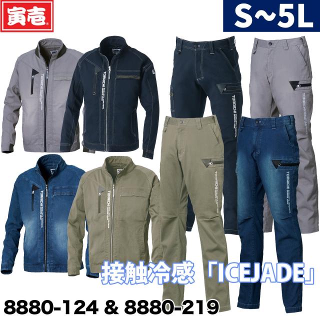 2023年寅壱新作 接触冷感 デニムジャケット カーゴパンツ 上下セット 8880-124-8880-219 S-3L 軽量 ストレッチ 作業着 作業服 春夏 サマージャケット かっこいい おしゃれ メンズ