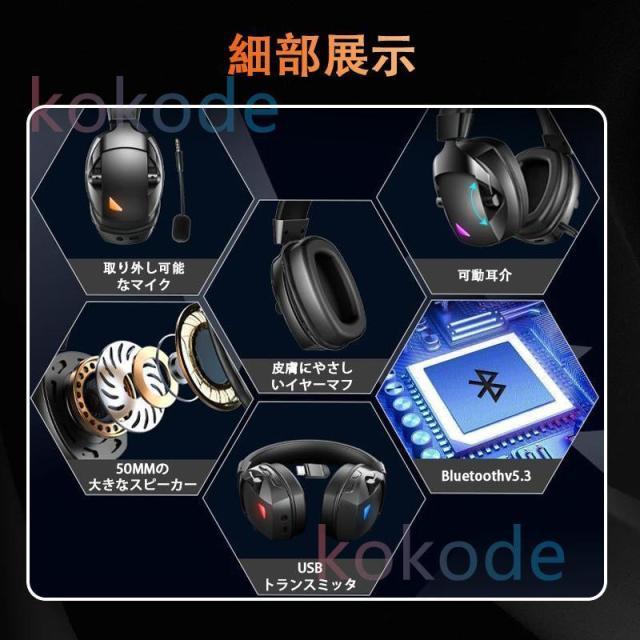 ワイヤレスヘッドホン イヤホン ヘッドセット Bluetooth5.3 ブルートゥースイヤホン マイク内蔵 クリア通話 HiFi高音質 ステレオサウンド ゲーミングイヤホン