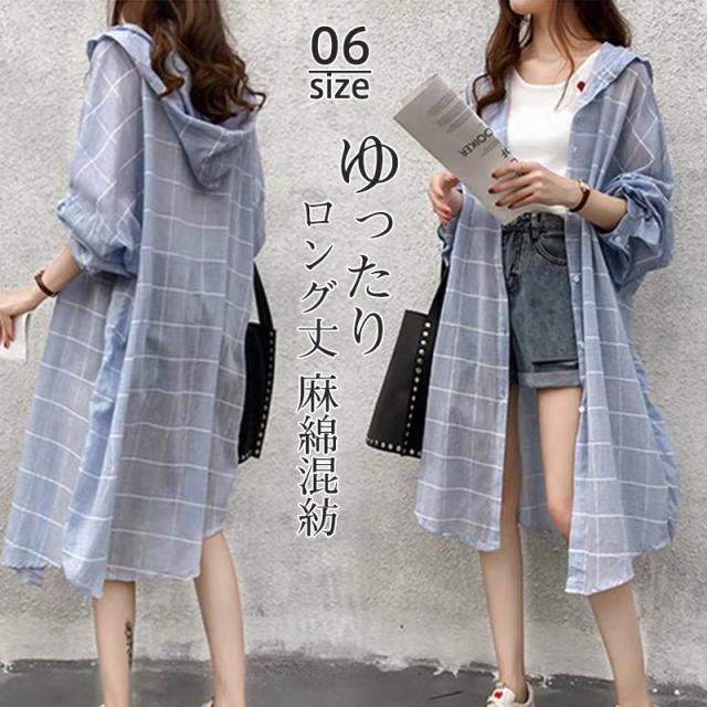 ワンピース レディース シャツワンピース ロング丈 麻綿混紡 シャツ フード付き 薄手 シンプル シンプル 大人 無地 ゆったり