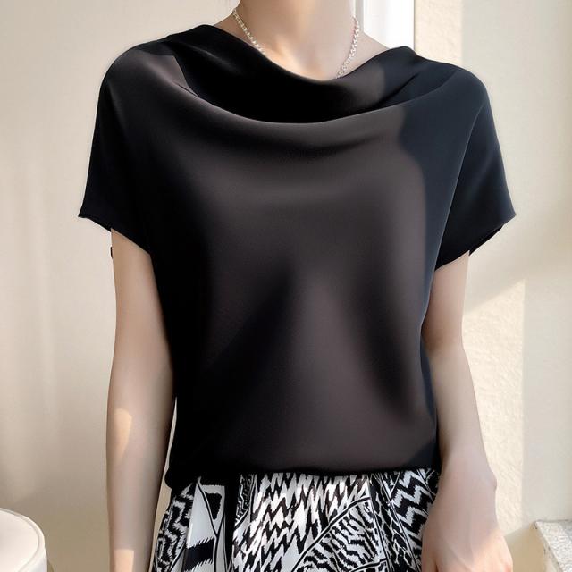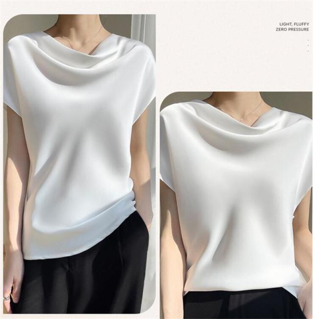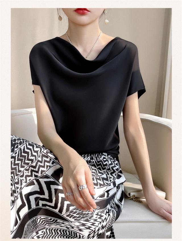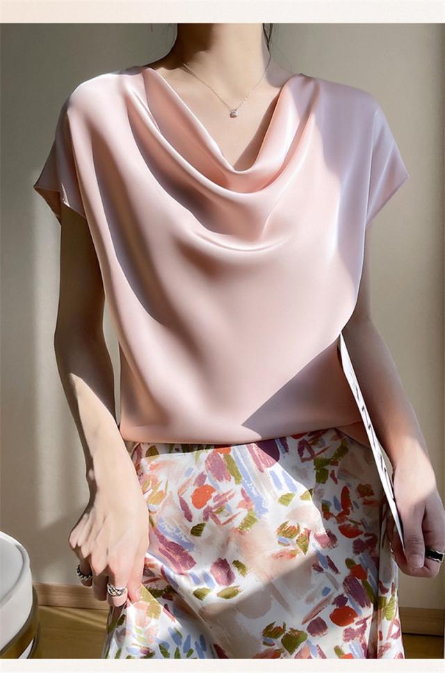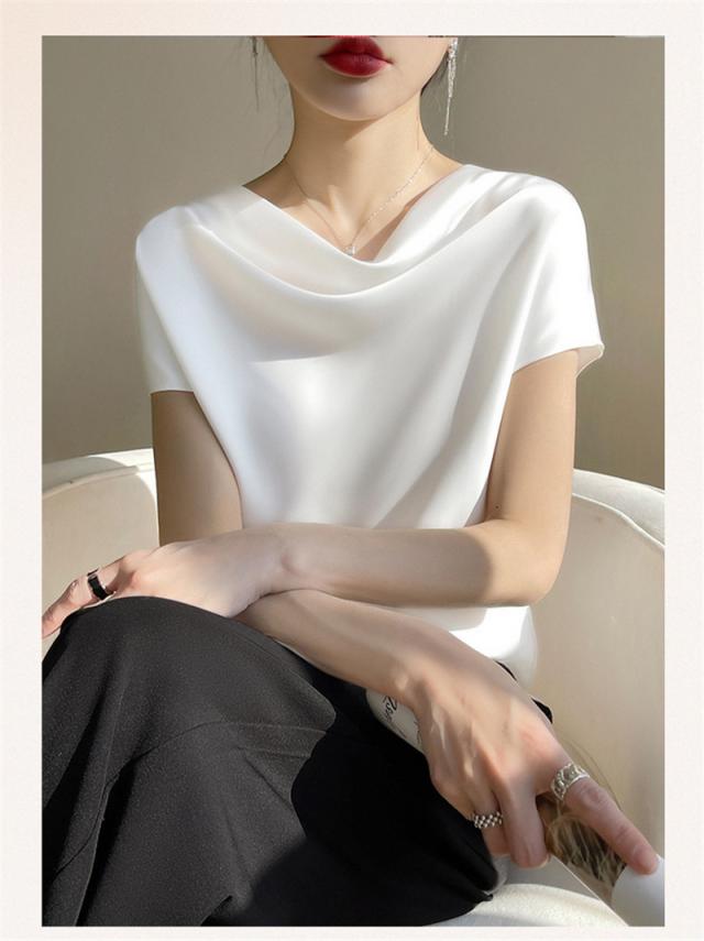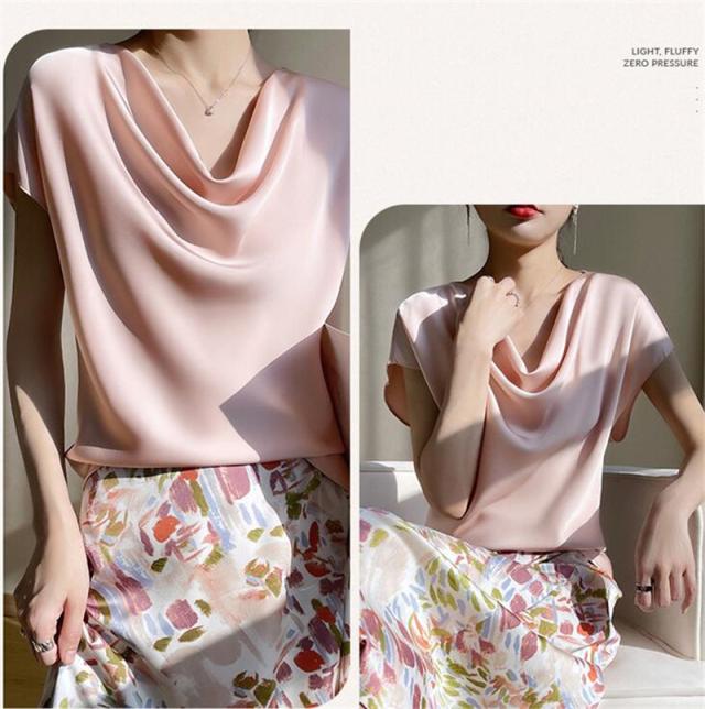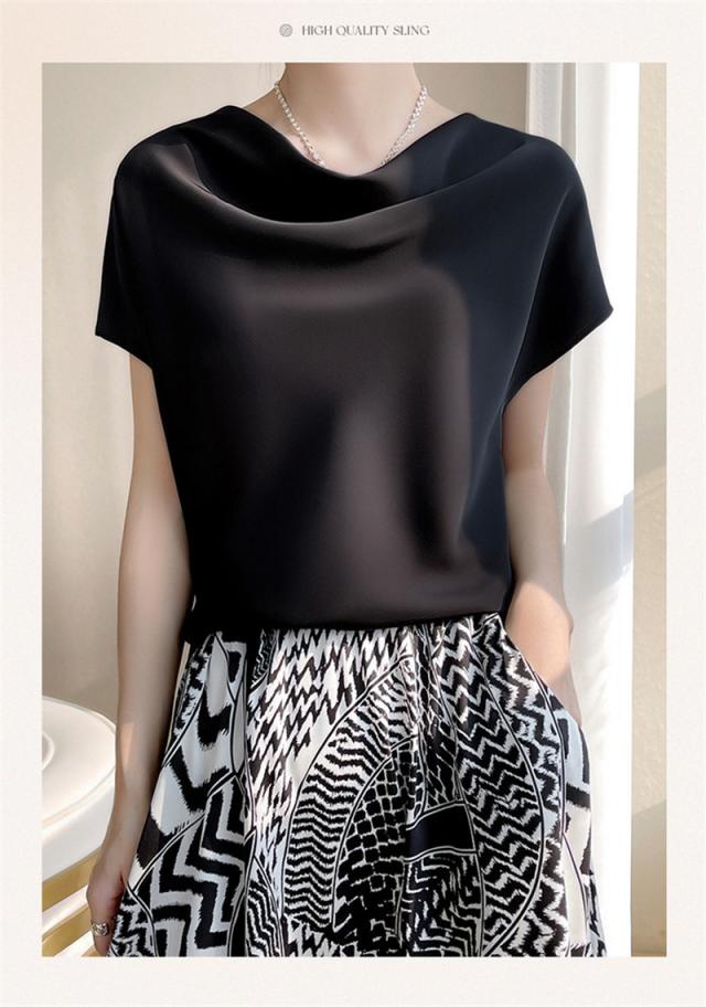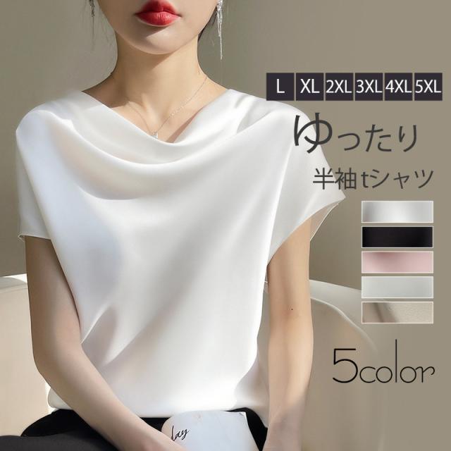 Tシャツ レディース カットソー 半袖 tシャツ シルク トップス 体型カバー 夏服 着痩せ ゆったり 無地 接触冷感 涼しい 通
