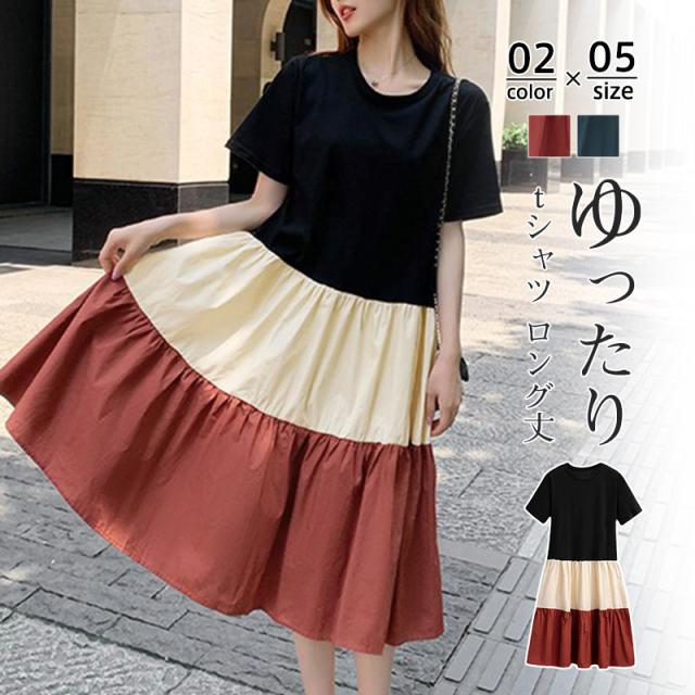 チュニック レディース ワンピース tシャツ 半袖 ロング丈 トップス シンプル シンプル 大人 無地 ゆったり おしゃれ 可愛い