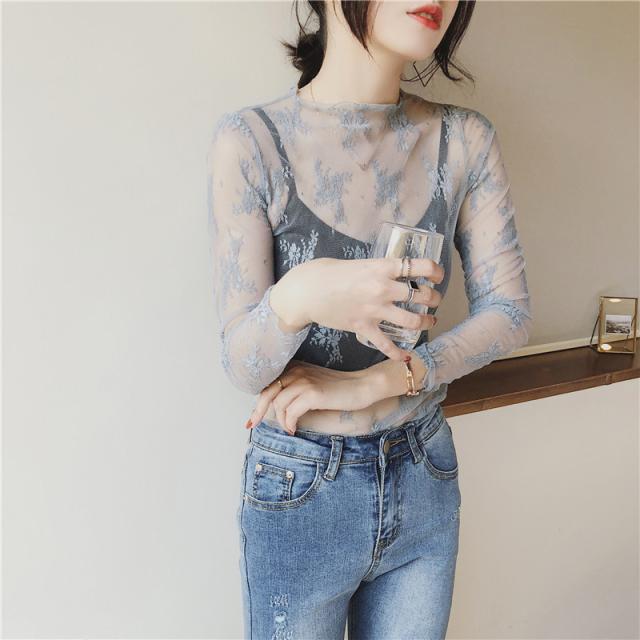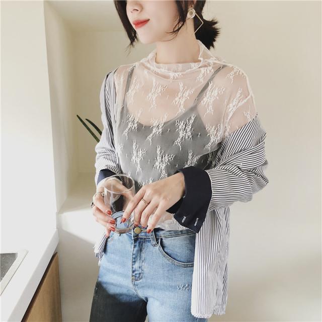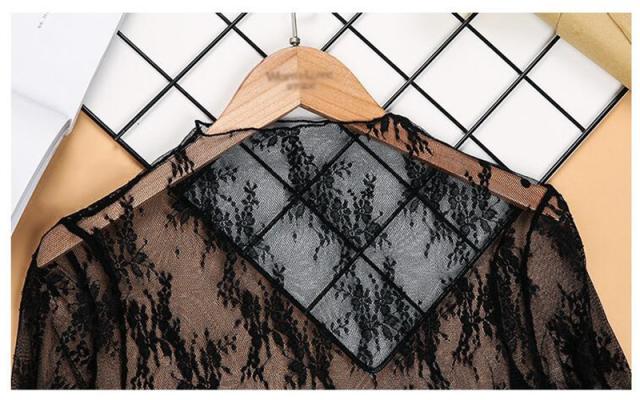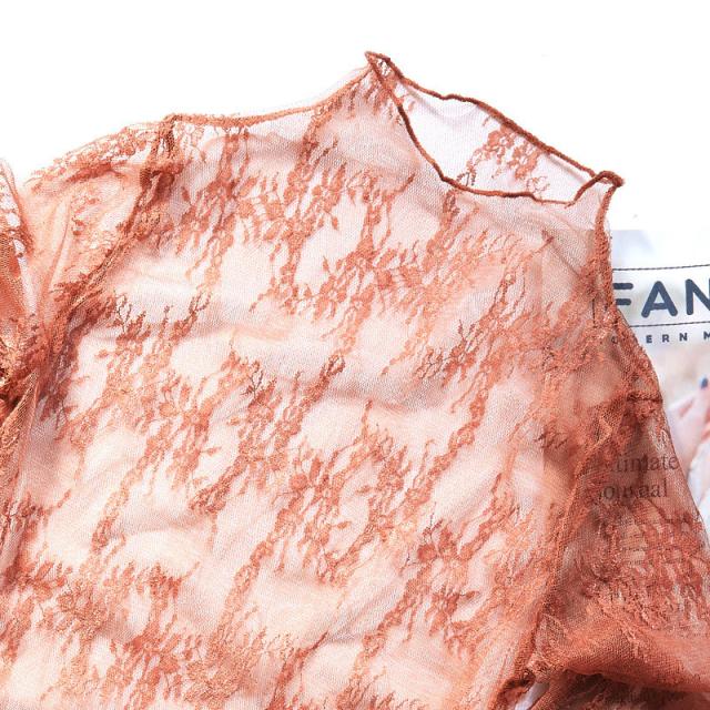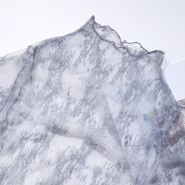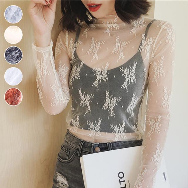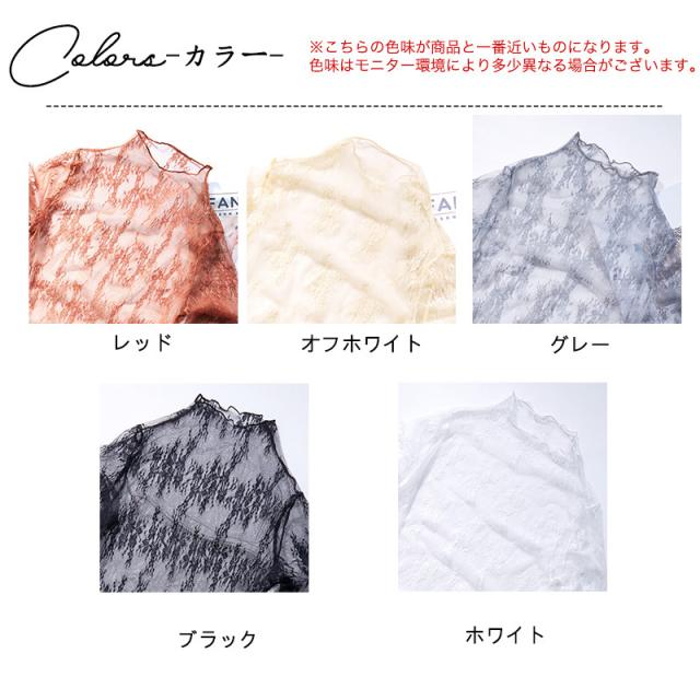 【2枚購入で10%OFF】 カットソー レディース 長袖 tシャツ シースルー トップス 総レース ハイネック インナー 可愛い