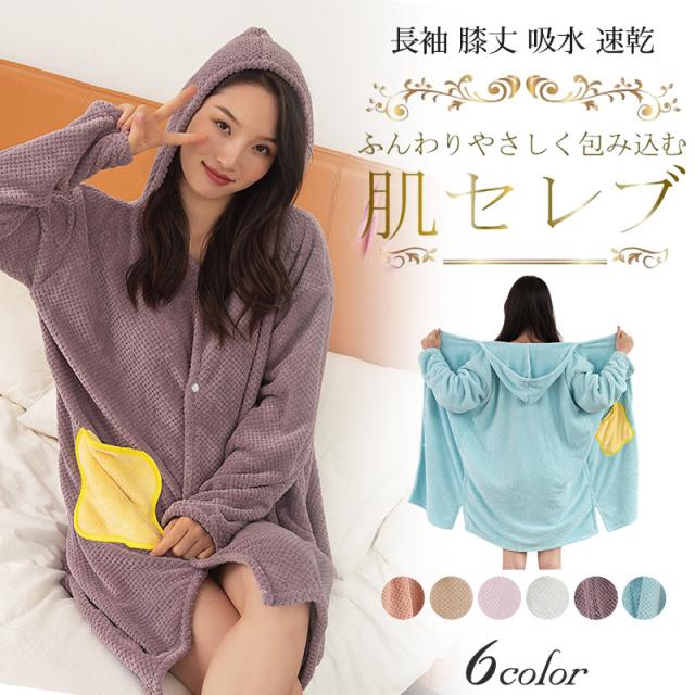 バスローブ レディース バスタオル 大人用 タオルケット 吸水 長袖 膝丈 吸水 速乾 おしゃれ プール 美容院