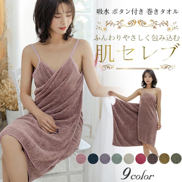 バスローブ レディース バスタオル 大人用 タオルケット 吸水 ボタン付き 巻きタオル おしゃれ プール 美容院