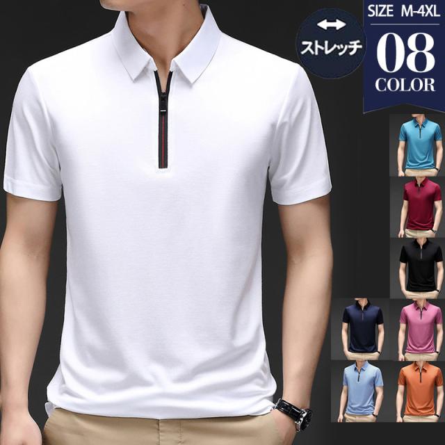 ポロシャツ 半袖 メンズ ゴルフシャツ tシャツ POLOシャツ ハーフジップ ビジネス クールビズ ゴルフウェア 切り替え オフ