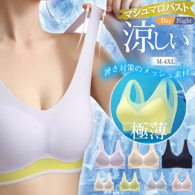 ナイトブラ ブラジャー レディース ノンワイヤー メッシュ素材 涼感 涼しい 接触冷感 極薄 シームレス 夜用ブラ 寝る時ブラ ス