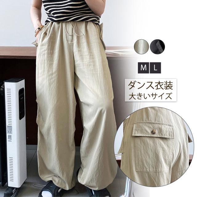 カーゴパンツ レディース ロングパンツ ミリタリーパンツ ワークパンツ テーパードパンツ ウエストゴム ダンス衣装 ウエストゴム