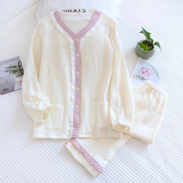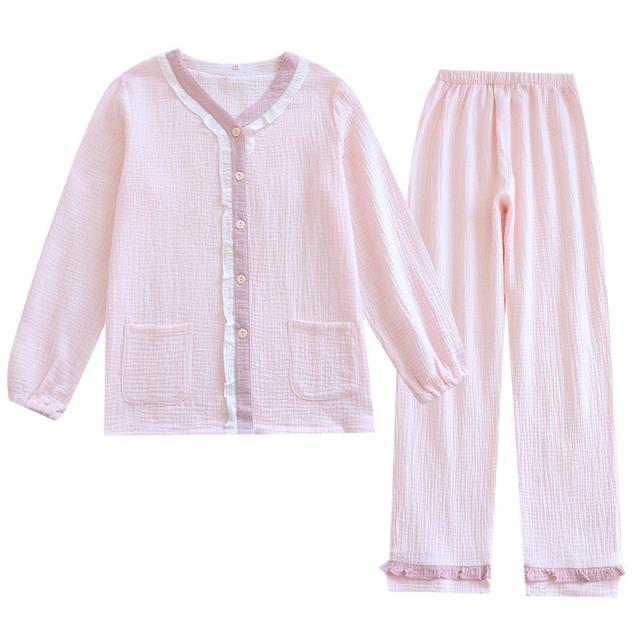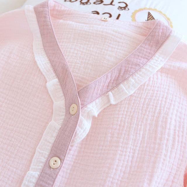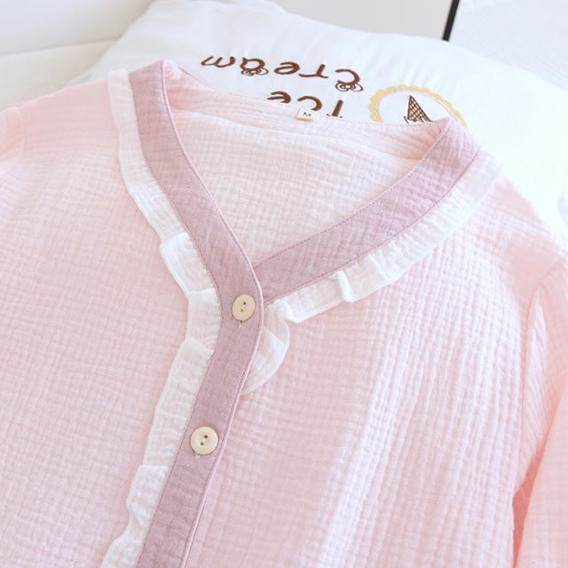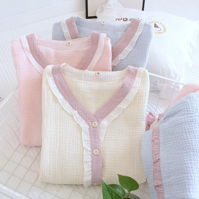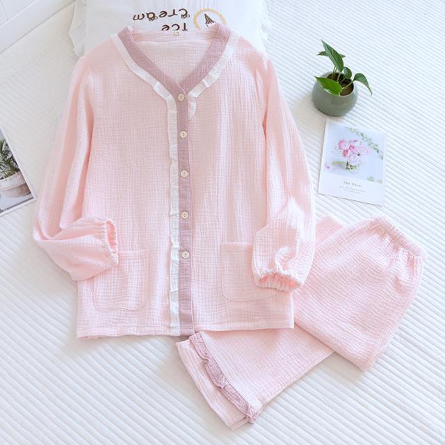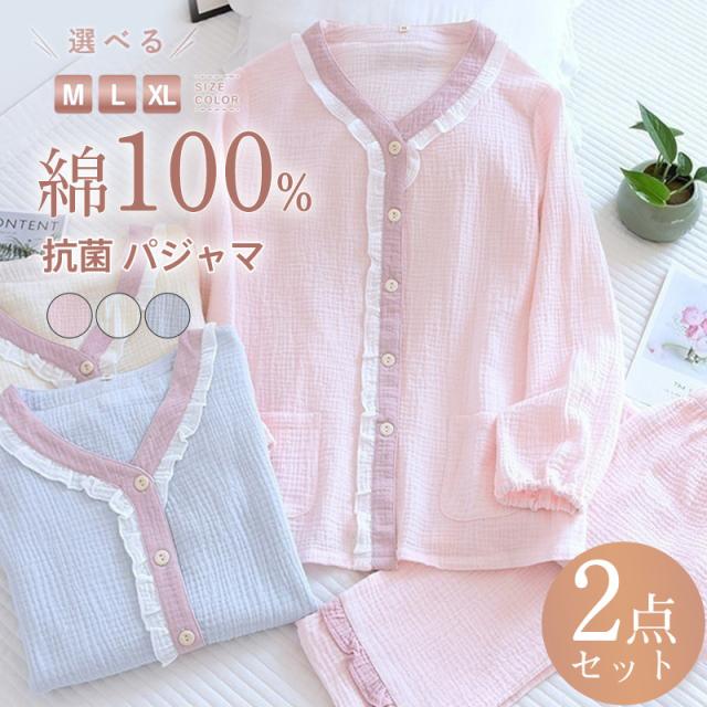 ルームウェア パジャマ レディース 二重ガーゼ 綿100% 前開き 長袖 長ズボン 春 夏 秋 ダブルガーゼ ガーゼパジャマ シニ