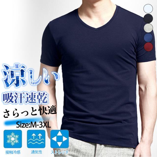 tシャツ メンズ 半袖 Vネック 夏服 吸汗 速乾 カットソー 涼しい 夏 トップス ティーシャツ スポーツ 運動会 ランニング