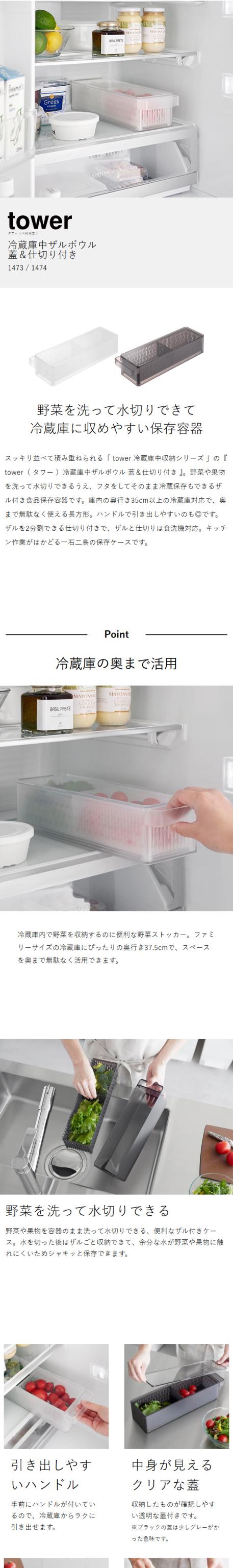 ■ 冷蔵庫中ザルボウル タワー 蓋&仕切り付き 1473 1474
