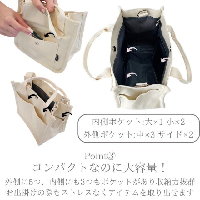 クーポン利用で1,580円 トートバッグ レディース ミニトート バッグ ショルダーバッグ ハンドバッグ マグネット ボタン シンプル おしゃれ ファッション マルチポケット キャンバス 斜めがけ 大容量 無地 小さめ