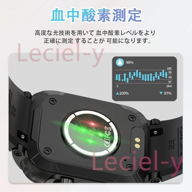 ●24H健康管理:健康診断、血中酸素、通話可能、カロリー、アラート、AI診断測定、睡眠監視や心拍数などの測定機能付き