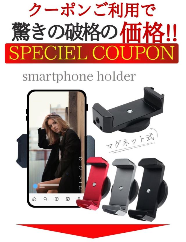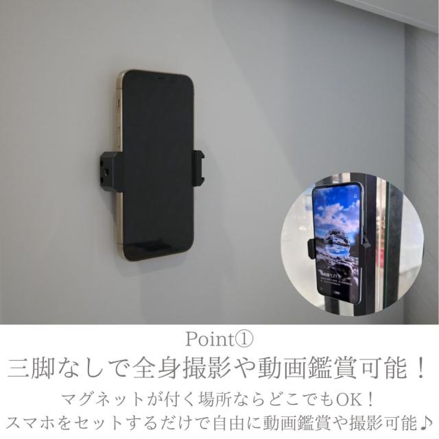 クーポン利用で1,380円 マグネット スマホスタンド スマホホルダー 三脚無し マグネット式 強力 磁石 磁力 全身 自撮り 動画 SNS 撮影 車 バイク 固定 キッチン スマホ スマートフォン 軽量 コンパクト おしゃれ かわいい