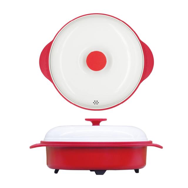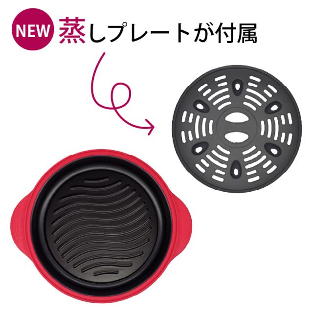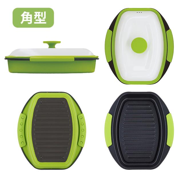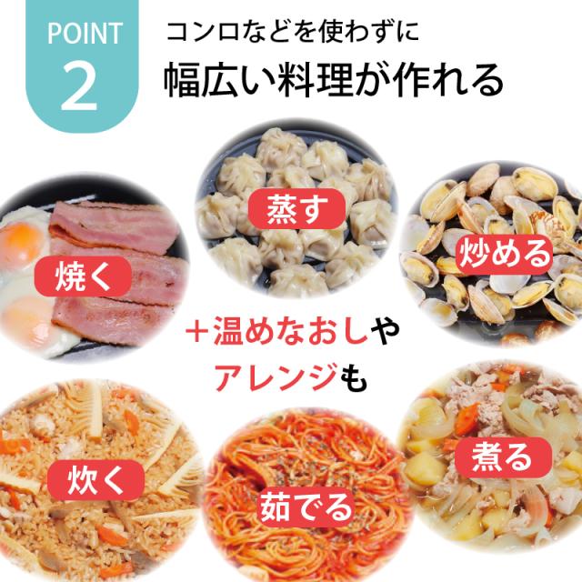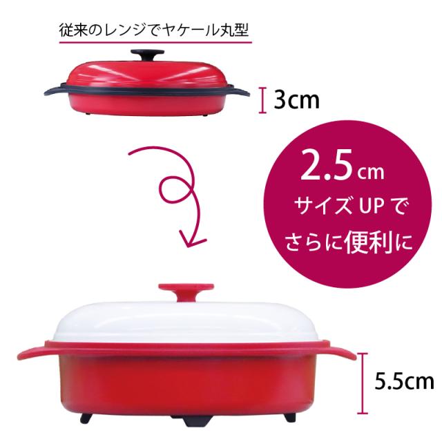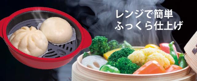 マイクロ波を反射するフタをすることでレンジ使用時のように食材のパサつきを抑え全体に熱がいきわたるのでふっくらとした仕上がりになります。