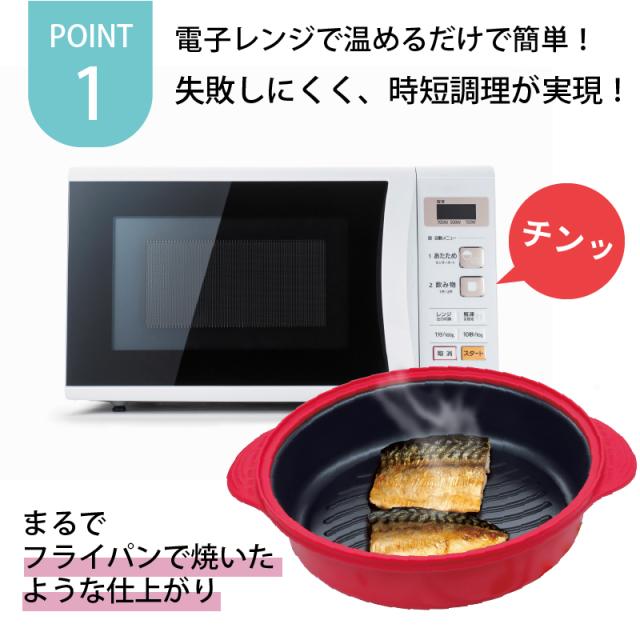 ・電子レンジでフライパンのような仕上がり。魚はもちろんお肉、目玉焼きなど焼き目しっかり、中はふっくらに仕上がります。