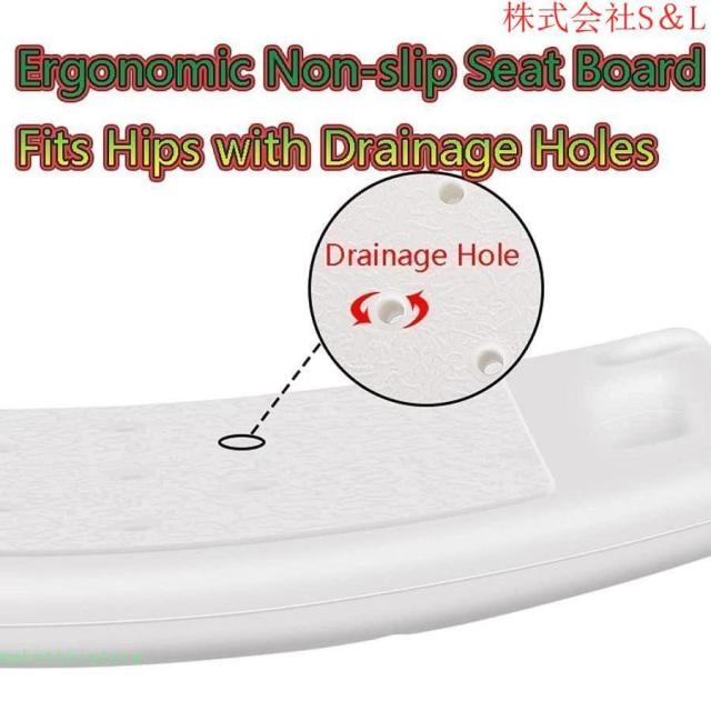 全方位の滑り止めデザイン・安全性:お風呂イスの座部シートには湾曲していて、凹凸があるので滑りにくい,取ってが付いているので、立ち上がりに便利,お風呂イスの脚部先ゴムは溝が彫ってあるので、浴室でも滑りにくい構造,高齢の両親が使っても安心な転倒防止設計です。