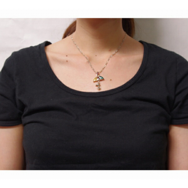 ステンドガラスの傘とスヌーピを合わせたネックレス。